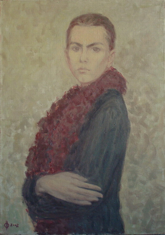 Daniela Chirion , The Red Scarf, oil on canvas, 70x50cm, 2002